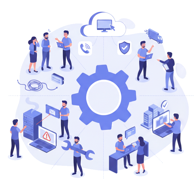 Unser Service Desk begleitet Sie bei allen IT-Herausforderungen: Systemausfälle, Software-Rollouts, Netzwerkprobleme, Hardware-Ersatz oder Standortwechsel - wir stehen Ihnen jederzeit zuverlässig zur Seite. Dank unserer ITIL-basierten Prozesse erhalten Sie strukturierte, effiziente und nachvollziehbare Unterstützung, die dafür sorgt, dass Probleme schnell gelöst werden und Ihre IT reibungslos läuft.